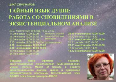 Цикл семинаров "ТАЙНЫЙ ЯЗЫК ДУШИ: работа со сновидениями в экзистенциальном анализе"